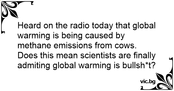 Heard on the radio today that global warming is being caused by methane emissions from cows. Does this mean scientists are finally admiting global warming is bullsh*t?