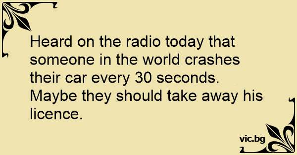 Heard on the radio today that someone in the world crashes their car every 30 seconds. Maybe they should take away his licence.
