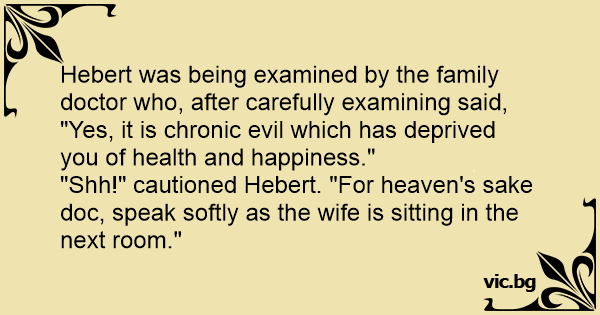Hebert was being examined by the family doctor who, after carefully examining said, "Yes, it is chronic evil which has deprived you of health and happiness."