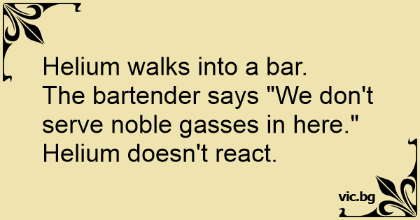 The bartender says "We don't serve noble gasses in here."