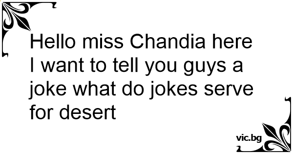 Hello miss Chandia here I want to tell you guys a joke what do jokes serve for desert