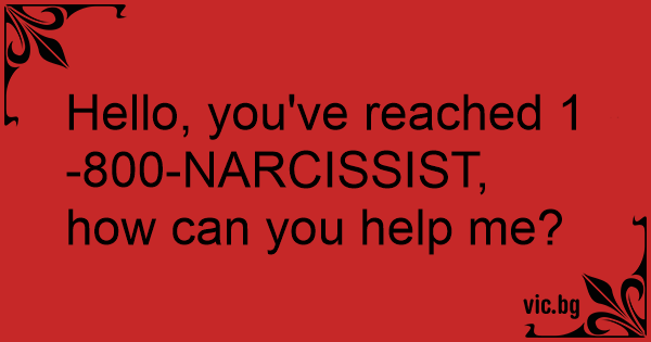 Hello, you've reached 1-800-NARCISSIST, how can you help me?