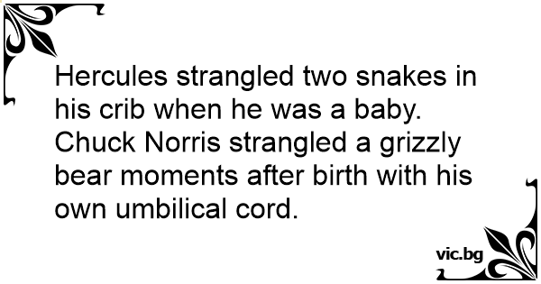 Chuck Norris strangled a grizzly bear moments after birth with his own umbilical cord.
