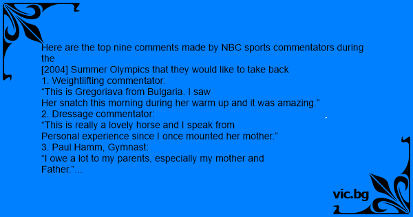Here are the top nine comments made by NBC sports commentators during the