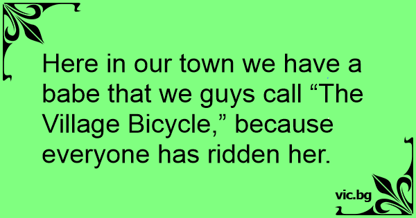 Here in our town we have a ваве that we guys call “The Village Bicycle,” because everyone has ridden her.