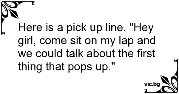 Here is a pick up line. "Hey girl, come sit on my lap and we could talk about the first thing that pops up."