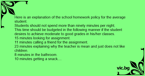 Here is an explanation of the school homework policy for the average student.