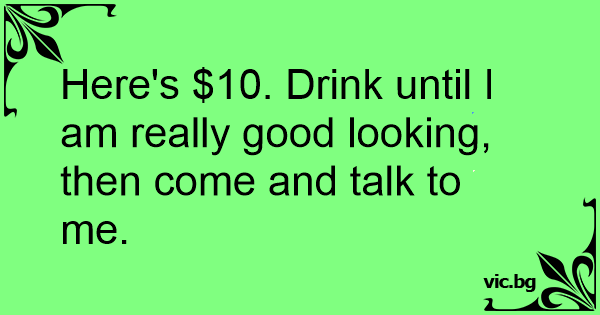 Here's $10. Drink until I am really good looking, then come and talk to me. 0 0 0 Drinking and Drunk Jokes
