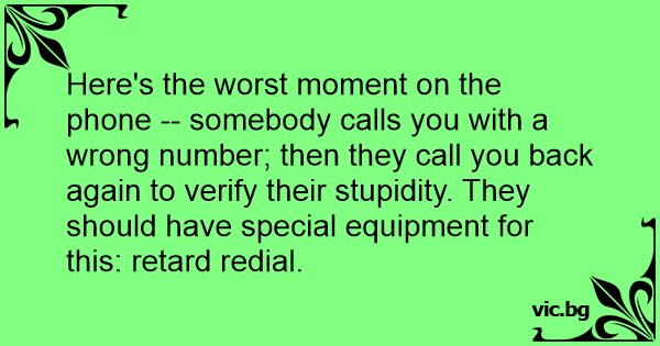 Here's the worst moment on the phone -- somebody calls you with a wrong number; then they call you back again to verify their stupidity. They should have special equipment for this: rетаrd redial.