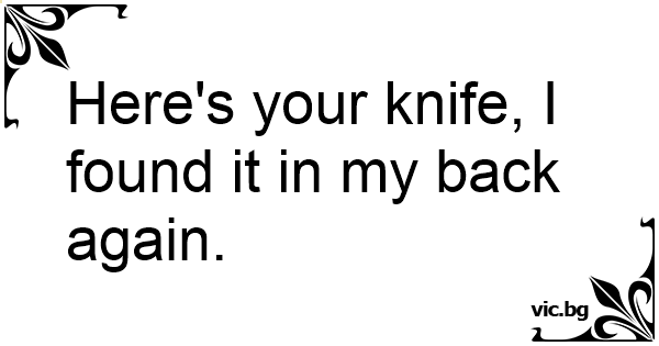 Here's your knife, I found it in my back again.