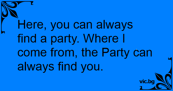 Here, you can always find a party. Where I come from, the Party can always find you.