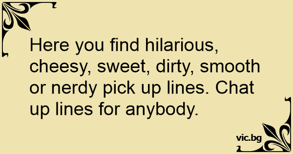 Here you find hilarious, cheesy, sweet, dirтy, smooth or nerdy pick up lines. Chat up lines for anybody.