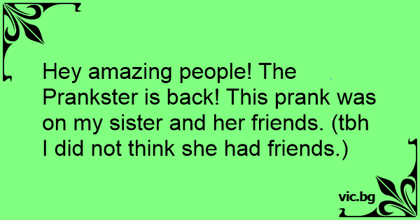 Hey amazing people! The Prankster is back! This prank was on my sister and her friends. (tbh I did not think she had friends.)