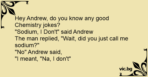 Hey Andrew, do you know any good Chemistry jokes?