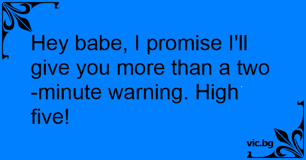 Hey ваве, I promise I'll give you more than a two-minute warning. High five!