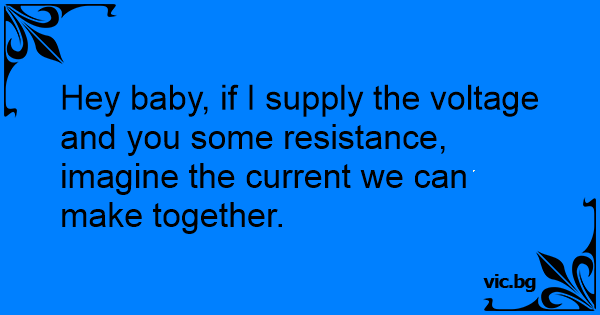 Hey baby, if I supply the voltage and you some resistance, imagine the current we can make together.