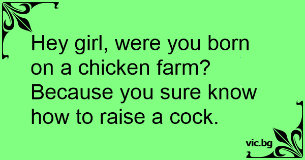 Hey girl, were you born on a chicken farm? Because you sure know how to raise a соск.