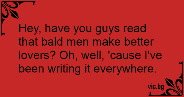 Hey, have you guys read that bald men make better lovers? Oh, well, 'cause I've been writing it everywhere.