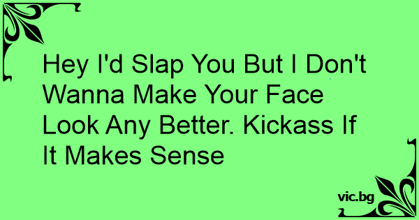 Hey I'd Slap You But I Don't Wanna Make Your Face Look Any Better. Kickass If It Makes Sense