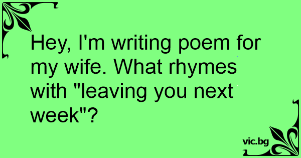 Hey, I'm writing poem for my wife. What rhymes with "leaving you next week"?