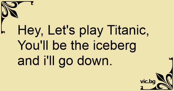 Hey, Let's play Titanic, You'll be the iceberg and i'll go down.
