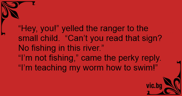 “I’m not fishing,” came the perky reply. “I’m teaching my worm how to swim!”