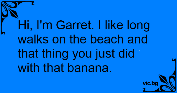 Hi, I'm Garret. I like long walks on the beach and that thing you just did with that banana.