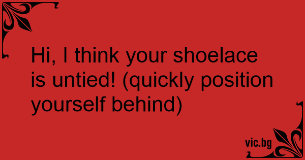 Hi, I think your shoelace is untied! (quickly position yourself behind)