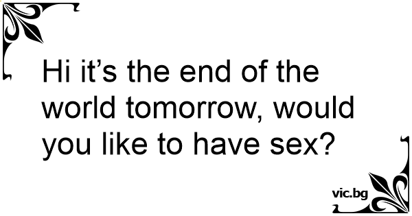 Hi it’s the end of the world tomorrow, would you like to have sеx?