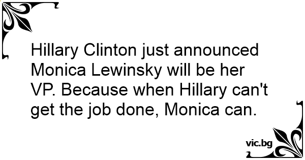 Hillary Clinton just announced Monica Lewinsky will be her VP. Because when Hillary can't get the job done, Monica can.