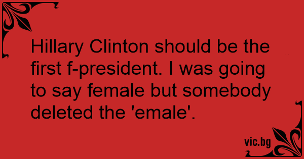Hillary Clinton should be the first f-president. I was going to say female but somebody deleted the 'emale'.