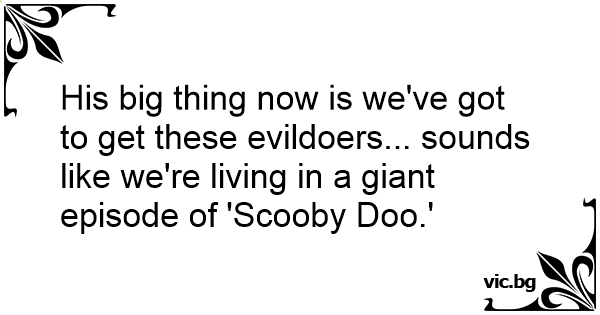 His big thing now is we've got to get these evildoers... sounds like we're living in a giant episode of 'Scooby Doo.'
