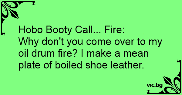 Why don't you come over to my oil drum fire? I make a mean plate of boiled shoe leather.