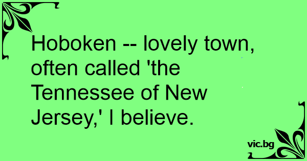 Hoboken -- lovely town, often called 'the Tennessee of New Jersey,' I believe.