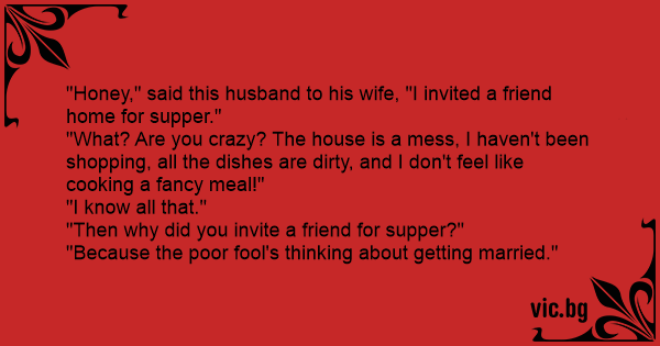 "Honey," said this husband to his wife, "I invited a friend home for supper."