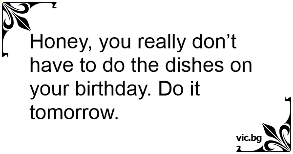 Honey, you really don’t have to do the dishes on your birthday. Do it tomorrow.