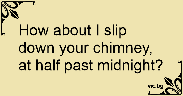 How about I slip down your chimney, at half past midnight?