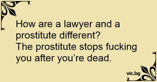 Яка різниця між повією та адвокатом? Повія перестане трахати коли ти помреш.