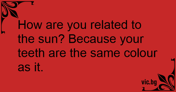 How are you related to the sun? Because your teeth are the same colour as it.