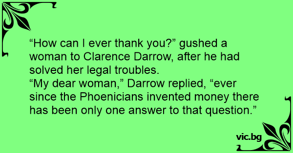 “How can I ever thank you?” gushed a woman to Clarence Darrow, after he had solved her legal troubles.