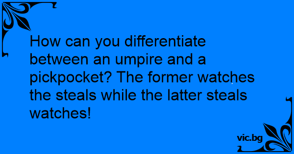 How can you differentiate between an umpire and a pickpocket? The former watches the steals while the latter steals watches!
