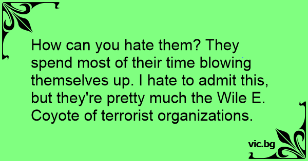 How can you hate them? They spend most of their time blowing themselves up. I hate to admit this, but they're pretty much the Wile E. Coyote of terrorist organizations.