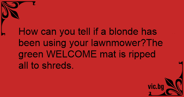 How can you tell if a blonde has been using your lawnmower?The green WELCOME mat is ripped all to shreds.