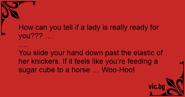 You slide your hand down past the elastic of her knickers. If it feels like you’re feeding a sugar cube to a horse … Woo-Hoo!