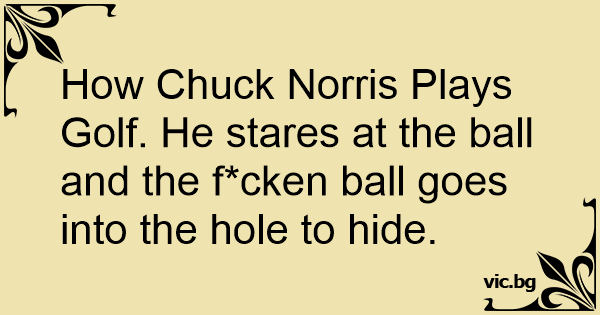 How Chuck Norris Plays Golf. He stares at the ball and the f*cken ball goes into the hole to hide.