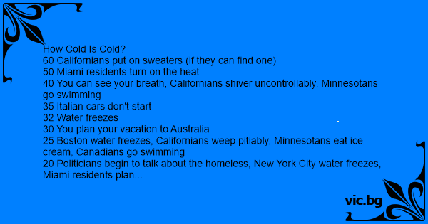How Cold Is Cold? 60...
