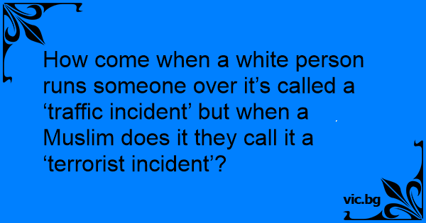 How come when a white person runs someone over it’s called a ‘traffic incident’ but when a Muslim does it they call it a ‘terrorist incident’?