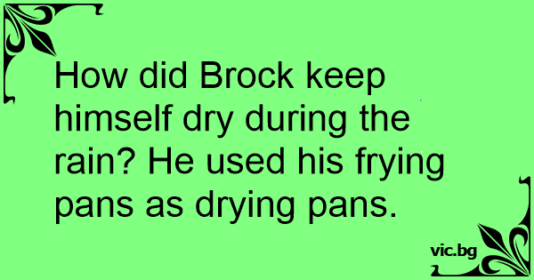 How did Brock keep himself dry during the rain? He used his frying pans as drying pans.
