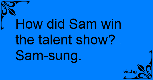 How did Sam win the talent show? Sam-sung.