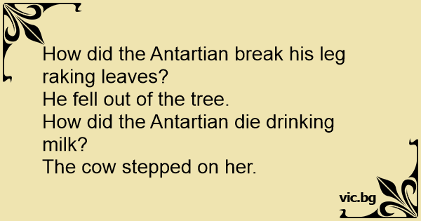 How did the Antartian break his leg raking leaves?